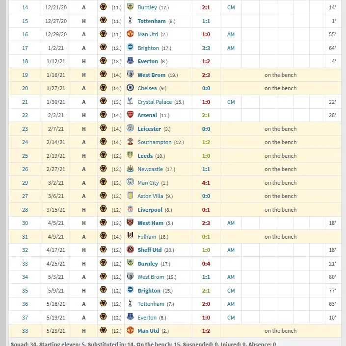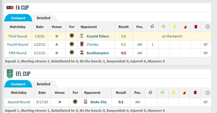 維蒂尼亞20歲在狼堡時候整個賽季大部分時候都是替補,首發(fā)也只有1場80分鐘,1場77分鐘,大部分首發(fā)都是60分鐘左右被換下。那年主力我沒記錯是內(nèi)維斯和穆蒂尼奧。