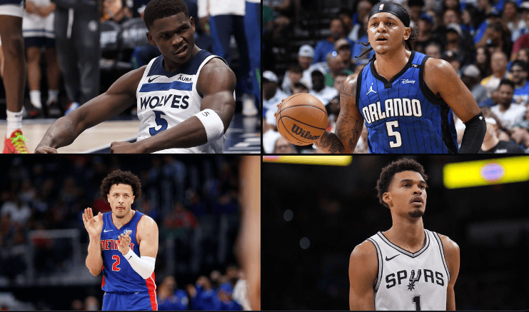 圖中的流言率先球員分別是:愛德華茲、班凱羅、板媒坎寧安和文班亞馬。問圖