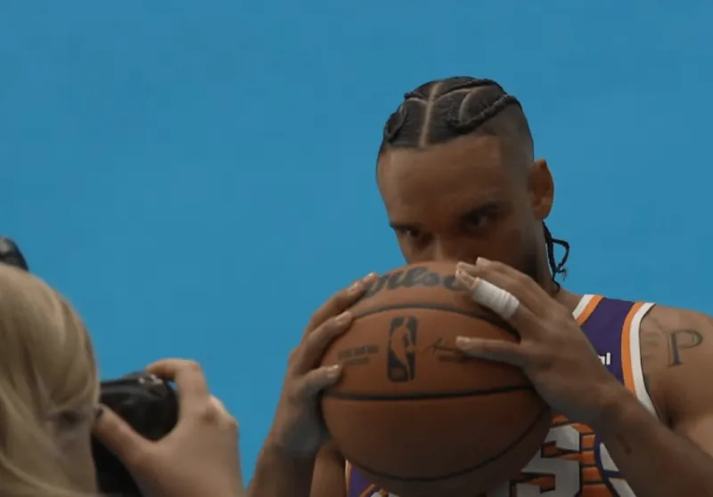今日是拍攝太陽(yáng)新賽季的媒體日,太陽(yáng)球員均在球館拍攝自己的強(qiáng)悍情定妝照。