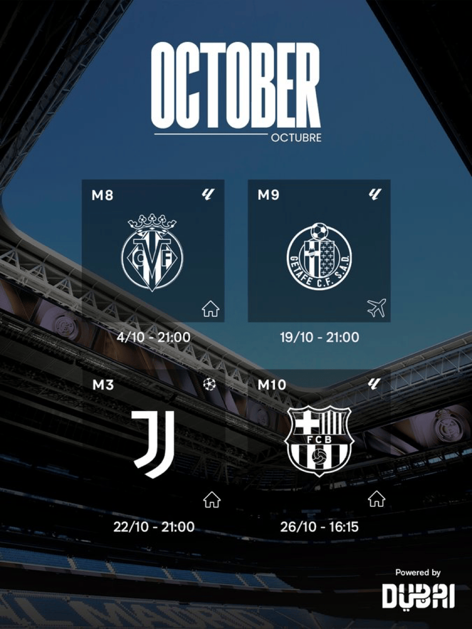 來(lái)源:X虎撲10月03日訊 皇家馬德里官方發(fā)布了10月份的賽程,詳情如下: