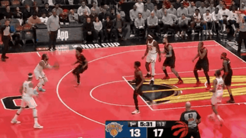 NBA杯淘汰賽,尼克斯對(duì)陣猛龍的態(tài)出比賽正在進(jìn)行中。