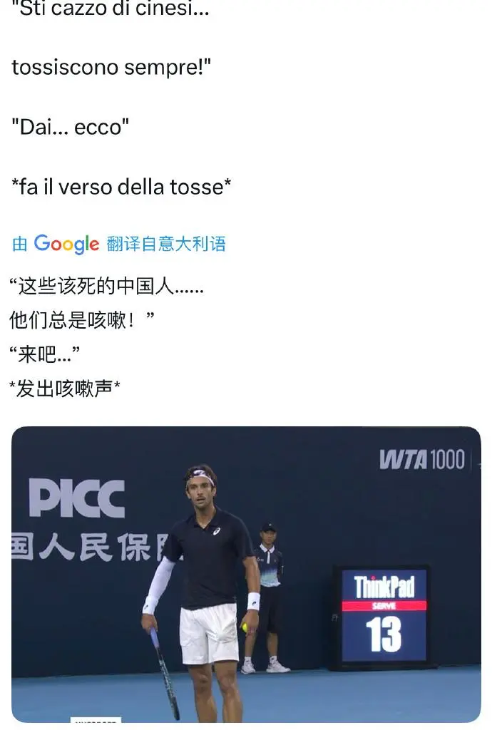 隨后,蒂辱穆塞蒂開始對(duì)著觀眾席不停抱怨還模仿了一下咳嗽聲。國觀比賽結(jié)束后,眾該中國外網(wǎng)的人總一些意大利網(wǎng)友把穆塞蒂說的話翻譯了出來:
