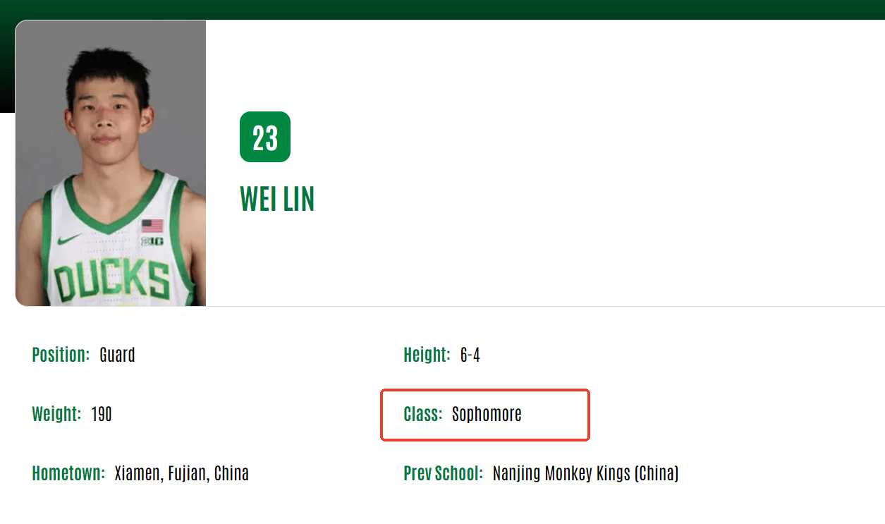 虎撲10月03日訊 今日,俄勒岡大學(xué)官網(wǎng)更新球員注冊(cè)信息:林葳注冊(cè)年級(jí)為大二。板俄