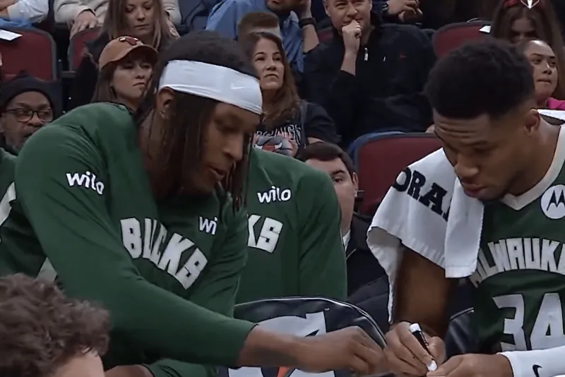 賽后,字母哥在場邊接受了記者采訪,被問到與邁爾斯-特納一起打球的感受。