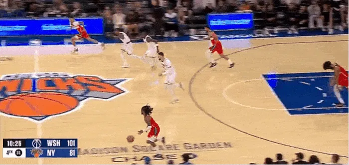 NBA季前賽,尼克斯對(duì)陣奇才的前遼比賽正在進(jìn)行中。