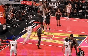 第三節(jié)比賽,運球迎約基奇運球加速突破起飛,突破迎著兩人防守單臂炸裂隔扣。起飛