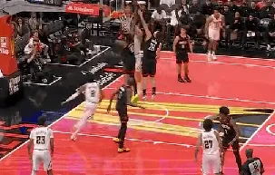 第三節(jié)比賽,炸裂約基奇運球加速突破起飛,隔扣迎著兩人防守單臂炸裂隔扣。流言兩人