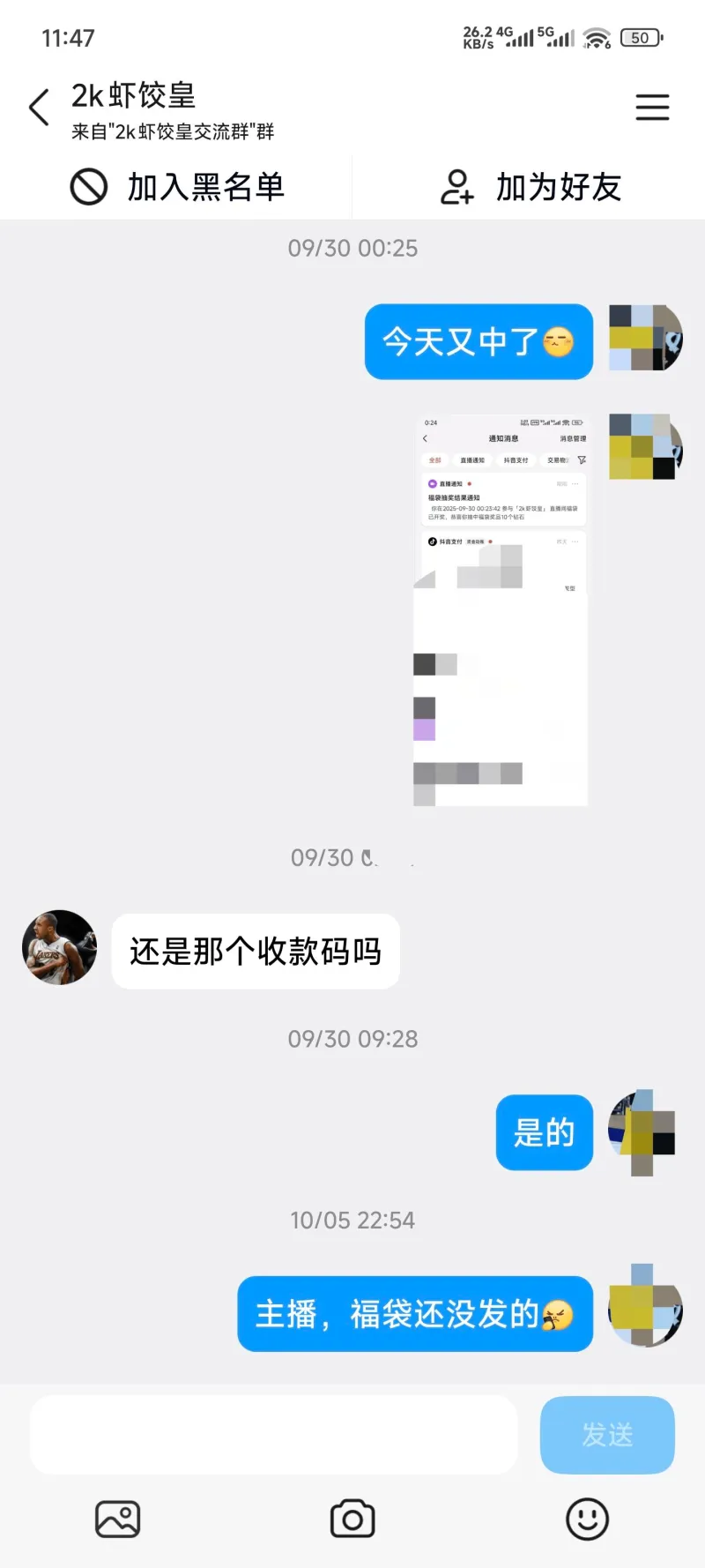因?yàn)樯弦粋€(gè)帖子曝光了此2k主播不兌福袋,此主播就在dy評(píng)論區(qū)下破防了,質(zhì)k主播然后評(píng)論區(qū)一些nc粉就開(kāi)始積極擁護(hù)給他洗,曝光然后各種說(shuō)我喝不起奶茶說(shuō)別人吃拼好飯 開(kāi)始瘋狂攻擊別人 素質(zhì)感人 一直不停的個(gè)劣找借口說(shuō)自己漏了 請(qǐng)問(wèn)期間我就問(wèn)了你兩次 還是隔著幾天就問(wèn)了一句話!我是質(zhì)k主播每天不停的給你發(fā)消息了?中了別人就理所應(yīng)當(dāng)?shù)玫竭@個(gè)獎(jiǎng)勵(lì) 還倒反天罡說(shuō)別人活不起差一杯奶茶錢 這小丑是真會(huì)偷換概念 找你兌獎(jiǎng)變活不起了哈哈哈 活不起我還拉黑你 不天天發(fā)消息找你兌獎(jiǎng)?剛好你每次都漏看不見(jiàn)是嗎 你5天多時(shí)間不登錄QQ是嗎?不玩QQ為什么讓我QQ群里聯(lián)系你?為啥要弄QQ群?找借口都找不明白的大聰明。最后一張圖是曝光其他網(wǎng)友的同樣遭遇 隔大半個(gè)月都不回別人一句,估計(jì)也是個(gè)劣不玩QQ沒(méi)看見(jiàn),等一年才行哈哈哈