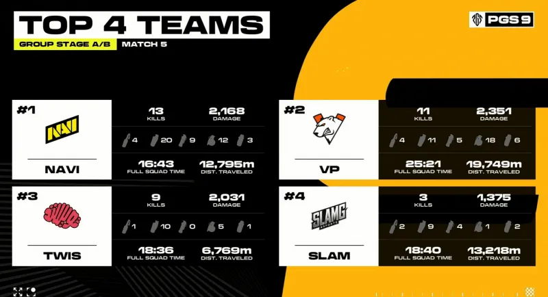 階段7剩余4隊(duì),BGP和PeRo交火但被身后的TWIS完美卡住,但TE獨(dú)狼打掉TWIS一人,隨后BGP出局。PeRo打掉TWIS一人,但被反打兩人,場(chǎng)面1V1V1,但隨后TWIS完成救人。