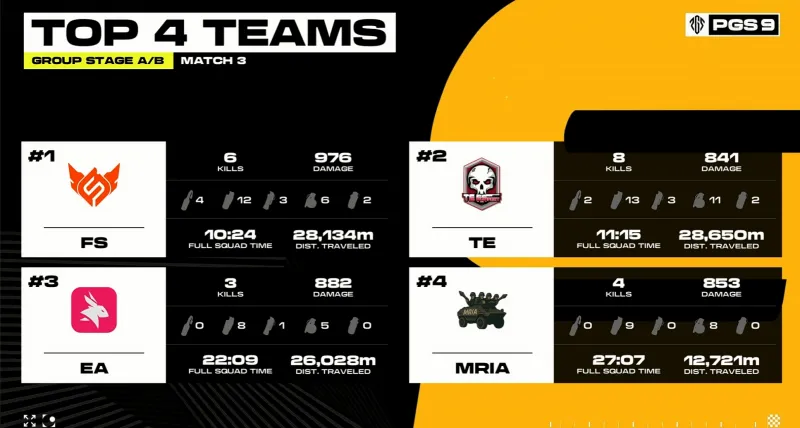 階段6剩余8隊(duì),平平FOR和TE在圈型北側(cè)交火,賽后隨后SLAM也加入戰(zhàn)局。組賽NAVI趁機(jī)拉進(jìn)圈,居前PeRo進(jìn)攻MRIA房區(qū)成功,表現(xiàn)但被NAVI架住,平平SLAM團(tuán)滅FOR,賽后NAVI左右開(kāi)弓分別打TWIS和PeRo。組賽最終QAD也打掉SLAM。居前
