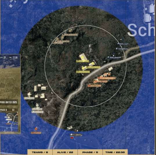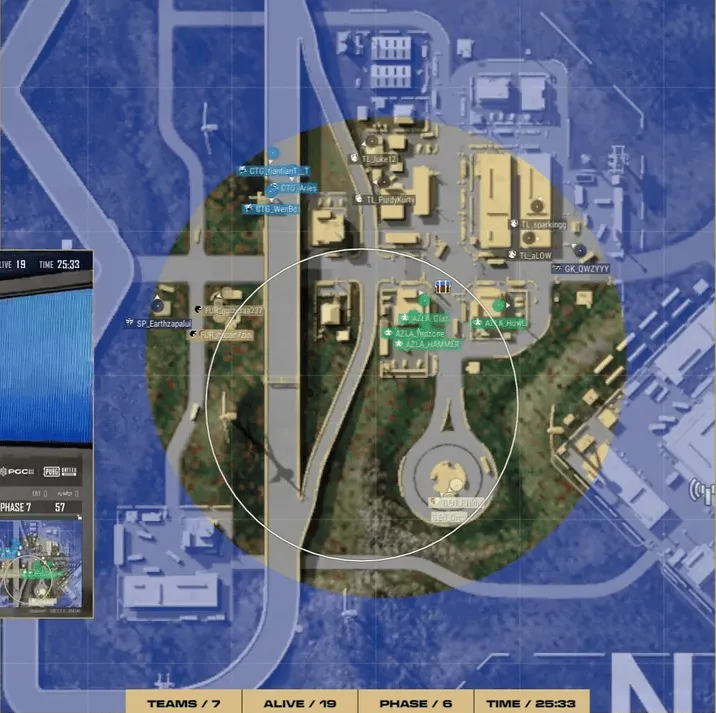 階段6,圈型刷到學(xué)校西部大倉附近,圍賽17獨(dú)狼被TL收掉,斷檔隨后TL三人也被PeRo連狙淘汰。領(lǐng)跑列進(jìn)