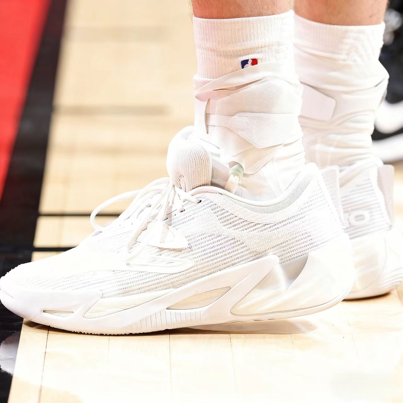 比賽中,迪穿吉迪上腳純白色Puma All- Pro Nitro 2 PE。著彪