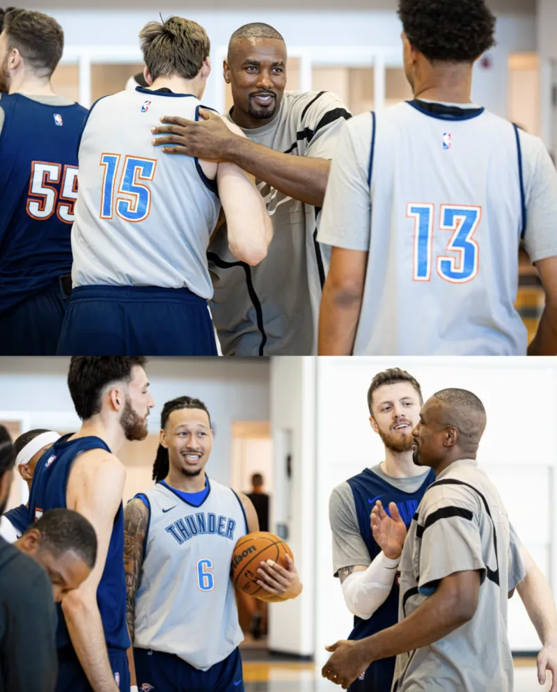“雷霆傳奇塞爾吉-伊巴卡(2009–2016)今日現(xiàn)身訓(xùn)練場(chǎng),見面與球隊(duì)見面交流 ??明天他也將出現(xiàn)在現(xiàn)場(chǎng),流言落地雷霆觀看揭幕戰(zhàn)!”雷霆官媒附文道。