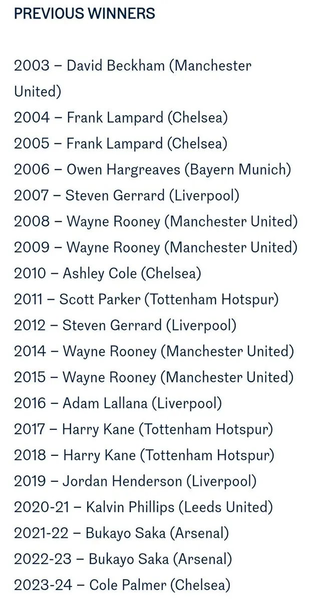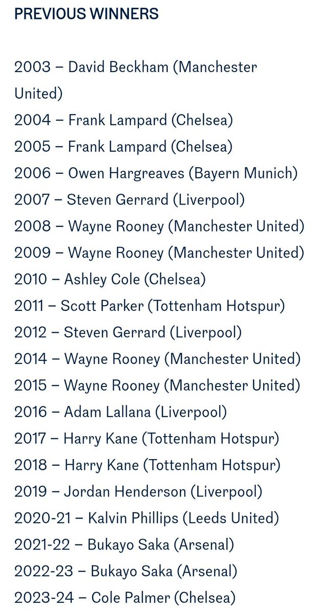 這一獎項(xiàng)創(chuàng)辦至今已經(jīng)有數(shù)位球員獲獎。年英年度