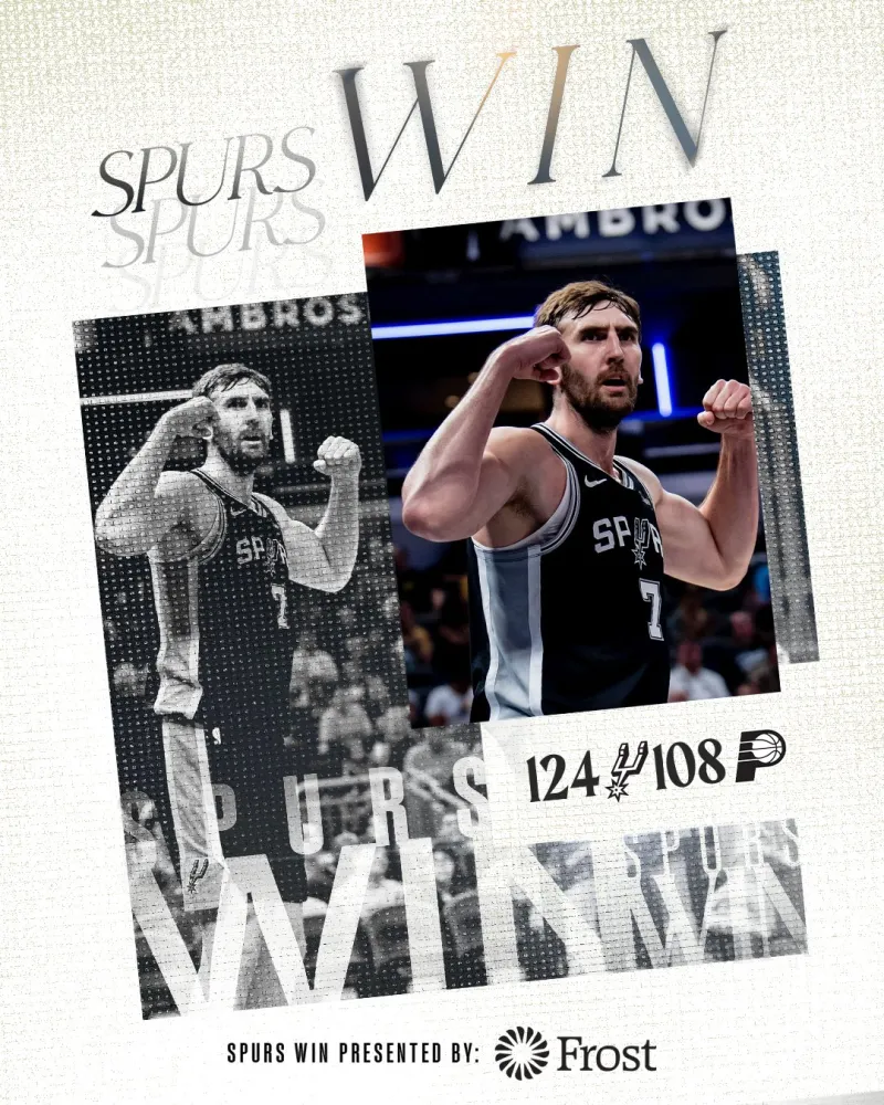 來源:X虎撲10月14日訊 馬刺以124-108戰(zhàn)勝步行者。