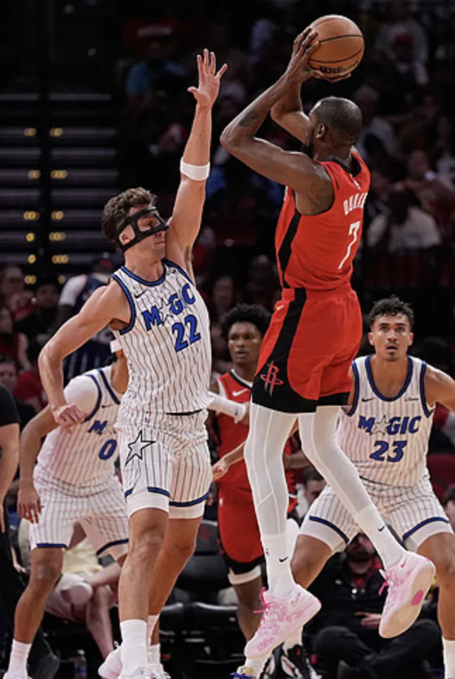 在今日的比賽中,火箭與魔術(shù)歷經(jīng)一個(gè)加時(shí)的鏖戰(zhàn),最終117-113險(xiǎn)勝。火箭球員杜蘭特此役發(fā)揮優(yōu)異,全場(chǎng)砍下35分5籃板6助攻的全面數(shù)據(jù)。