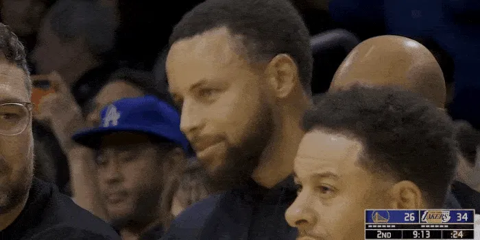 第二節(jié)比賽,日兩人均鏡頭給到場邊觀戰(zhàn)的未出庫里兄弟,今日兩人均未出戰(zhàn)。到觀戰(zhàn)
