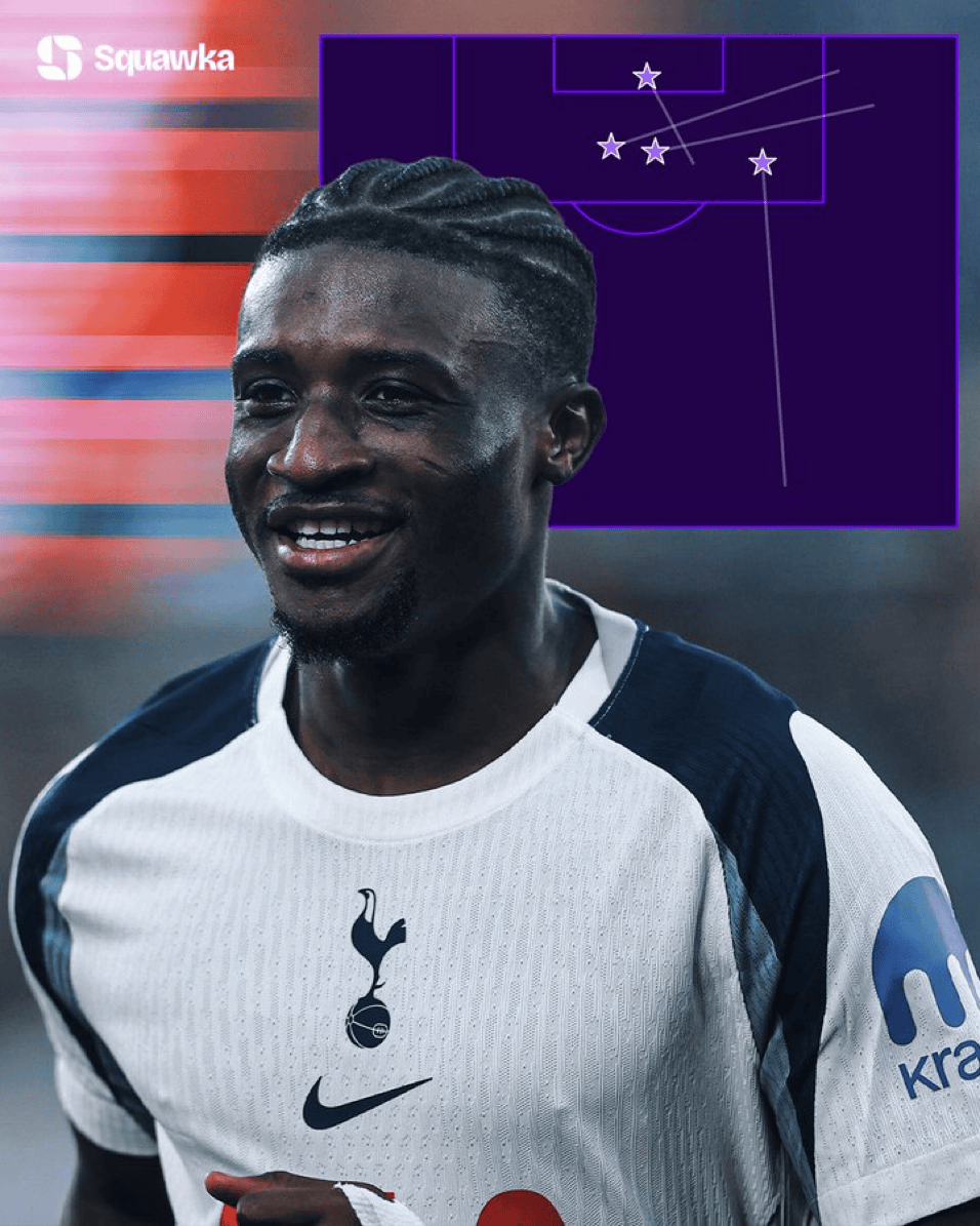 虎撲10月04日訊 熱刺和利茲聯(lián)的比賽正在進(jìn)行,庫杜斯貢獻(xiàn)助攻。季英