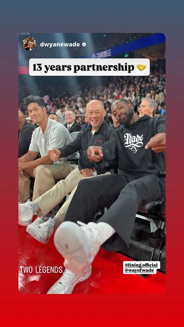 德維恩-韋德INS曬出與李寧合影:13年的板韋伴合作伙伴。
