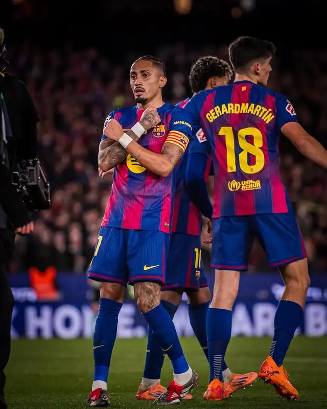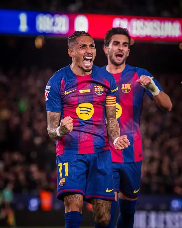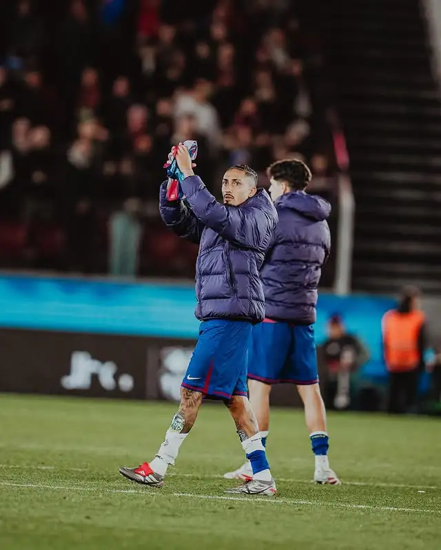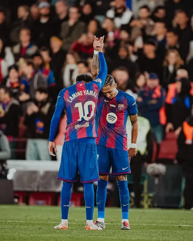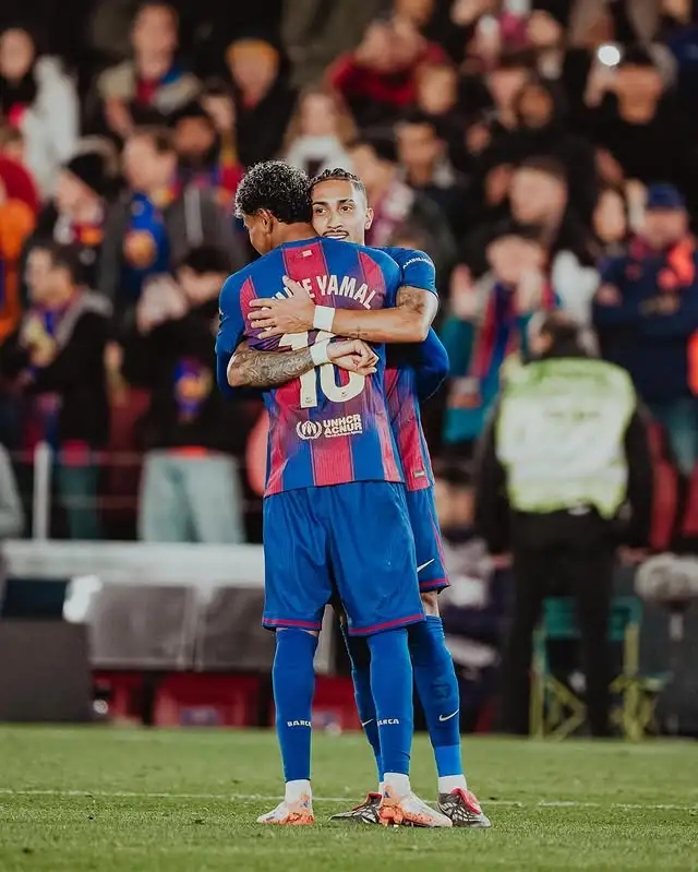 賽后拉菲尼亞更新社媒曬出與亞馬爾的爾賽賽場合照,在社媒中拉菲尼亞配文:LY10 x R11 ??????????巴薩加油!場合??????