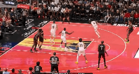 虎撲11月22日訊 NBA杯小組賽,火箭對陣掘金的底角得分比賽正在進(jìn)行中。