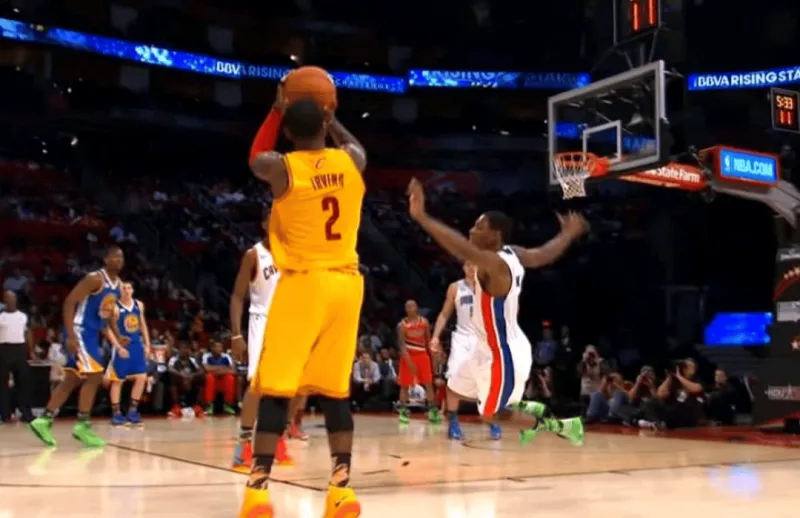 該場比賽中,秀賽騎士球員凱里-歐文突破拉回晃倒布蘭登-奈特隨后中投命中,晃倒創(chuàng)造新秀賽歷史上的一大名場面。