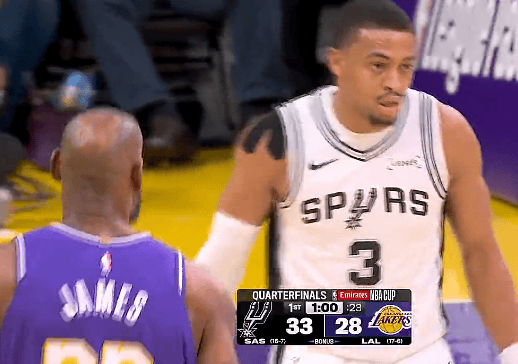 NBA杯四分之一決賽,湖人對陣馬刺的場分比賽正在進行中。