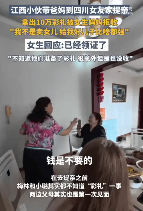 今年國(guó)慶,雙方父母首次見面商議婚事。席間,小璐家人未提彩禮,梅林母親卻主動(dòng)拿出備好的彩禮,稱“娶媳婦該有的禮數(shù)不能少”。小璐母親堅(jiān)決拒收,直言“我不是賣女兒,你們給我好兒子比啥都強(qiáng)”,還體諒梅林父母務(wù)農(nóng)不易,讓其留錢養(yǎng)老。這一幕讓梅林感動(dòng)落淚,小璐也表示,未盼過彩禮,此舉是對(duì)方父母對(duì)自己的尊重。