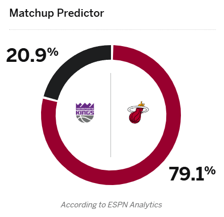 [流言板]ESPN預(yù)測明日熱火vs國王比賽:熱火勝率高達79.1%