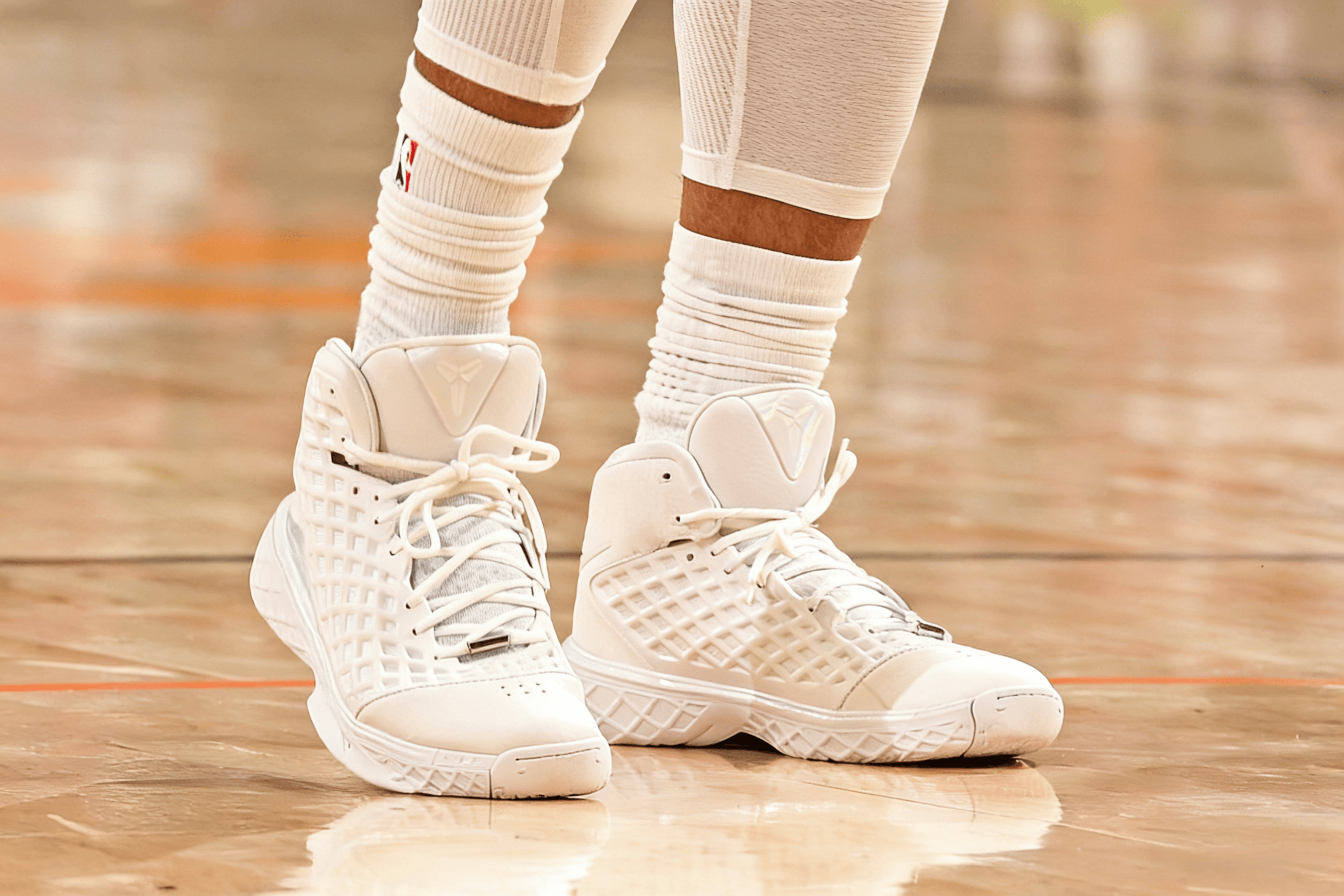 比賽中,板德比德羅贊上腳Nike Kobe 3 Protro“Halo”。穿著純白