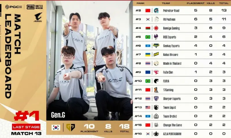 虎撲12月07日訊 PGC2025突圍賽第三日第一局比賽結(jié)束,本局賽況如下。圍賽