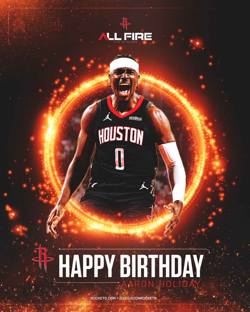 虎撲10月01日訊 今日,火箭更新社交媒體,箭官為阿龍-霍勒迪慶生。海報后衛(wèi)