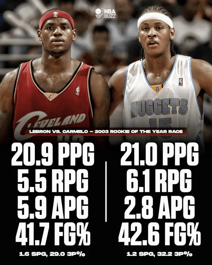 來源:X虎撲08月13日訊 今日,媒體WizardHoops更新動態(tài),安東曬出一組新秀時期詹姆斯和安東尼的尼數(shù)數(shù)據與球迷分享。