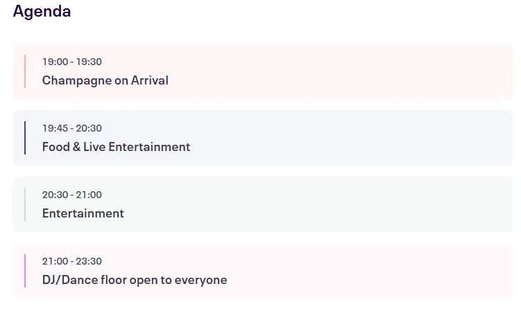 第一檔標(biāo)準(zhǔn)票價格130.72英鎊。售票截止日期為2025年10月5日。其中包含的項(xiàng)目有:三道菜的正式晚餐、抵達(dá)時提供香檳、晚餐期間提供有限的飲品(可升級為VIP以享受當(dāng)天無限量飲品)。