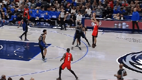 NBA常規(guī)賽,火箭客場對陣獨(dú)行俠的球過比賽正在進(jìn)行中。