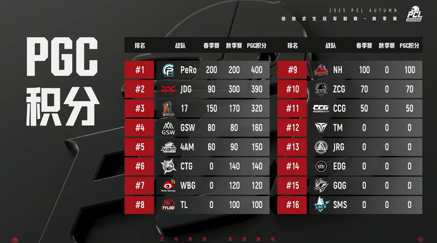 PCL隊伍PGC積分: