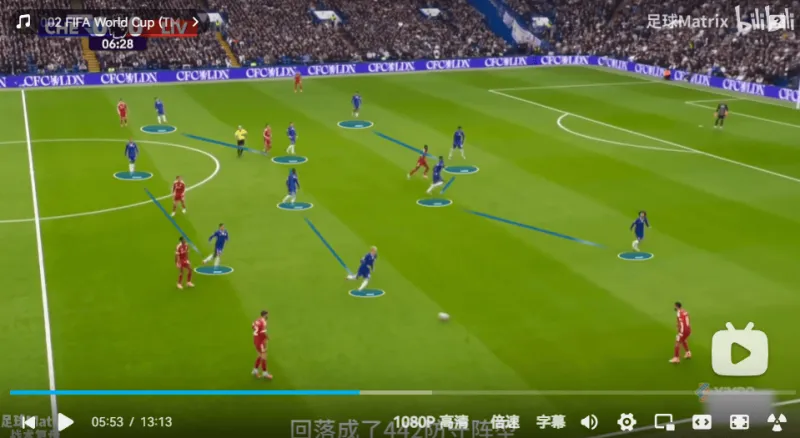 ②切爾西初始陣形也是4231,陣地戰(zhàn)時候也堅決回防為442,其實加納喬真的值得表揚,剛剛還在前場沖刺傳中,后續(xù)就馬上回撤到本方半場重組陣形,他體能充沛,防守時候戰(zhàn)術(shù)紀律素養(yǎng)真的好。