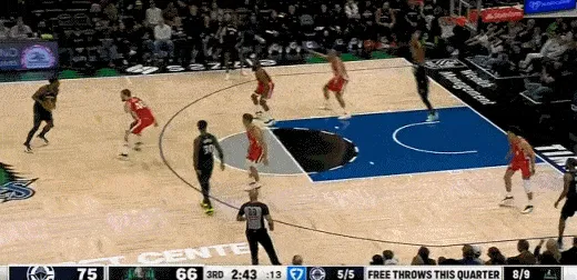 博格丹持球過半場,大洛佩斯擋拆,博格丹強側(cè)背雙人包夾,馬上背傳找到弧頂拆開得大洛佩斯,洛佩斯三分空位命中,這球完美體現(xiàn)博格丹的視野和組織能力。