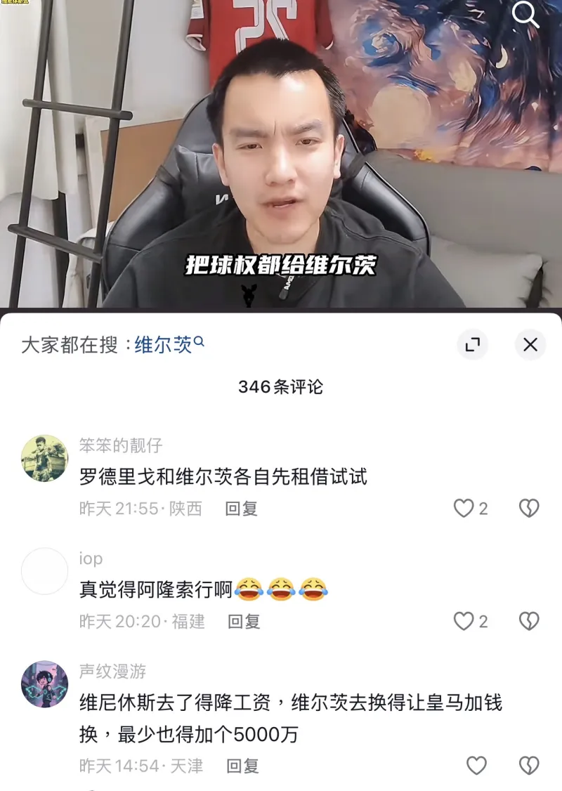 抖音一個(gè)熱度還挺高的視頻,說(shuō)讓維爾茨跟休斯或者李哥互相租借,有可能兩隊(duì)就都起飛了