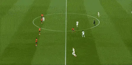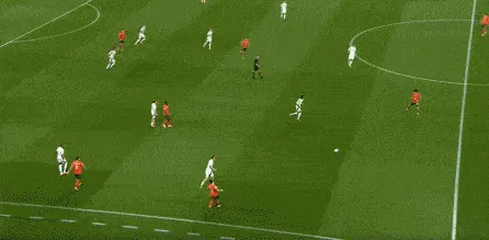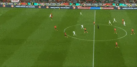 開局階段,匈牙利就打出了進球,一個大腳過來,葡萄牙連輸一點和二點,匈牙利則借此運轉(zhuǎn)到弱側(cè),然后在局部打穿葡萄牙的外圍防守,起腳遠(yuǎn)射制造定位球: