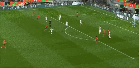這一切,實際上都是在利用葡萄牙中衛(wèi)和后腰區(qū)域防守能力不行的老毛病,而相較之下,葡萄牙則還是要進入到邊路傳中的軌道當(dāng)中:
