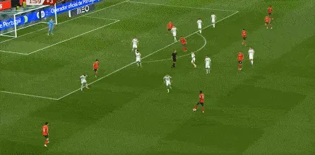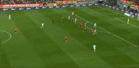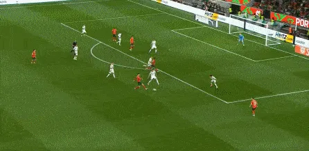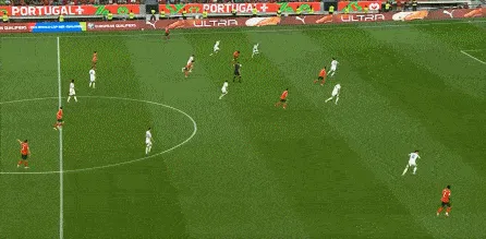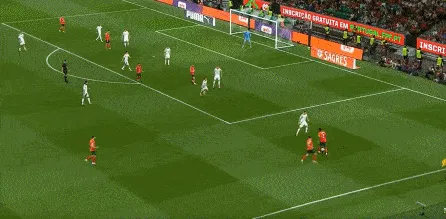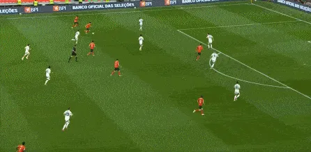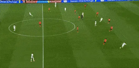 雖有縫隙,但并不明顯,所以葡萄牙的進攻還是需要通過兩翼來打,這個時候,羅伯特-馬丁內(nèi)斯已經(jīng)改正,但仍有瑕疵的進攻端就開始顯現(xiàn)問題了。