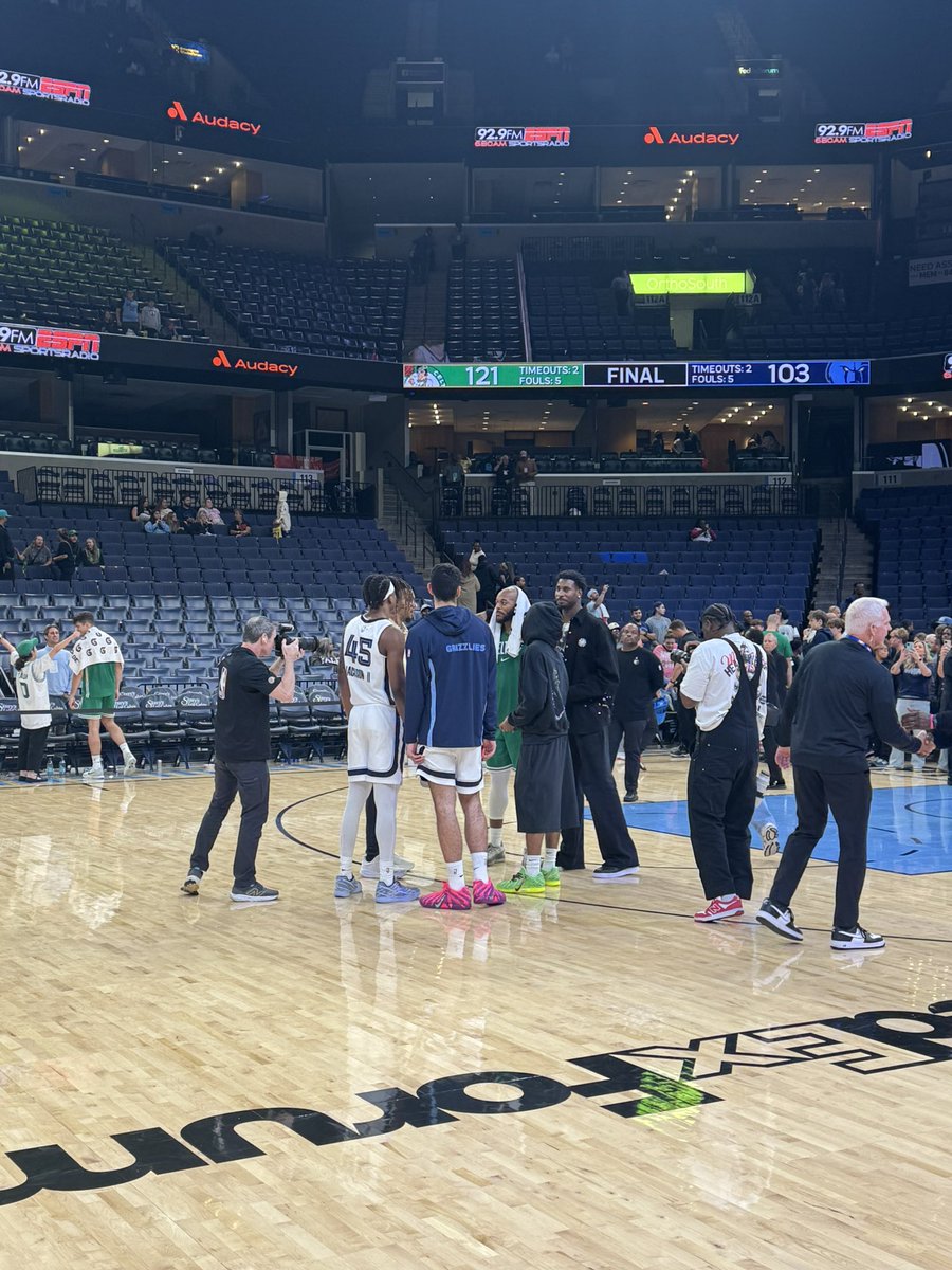 虎撲10月09日訊 今日,美記Damichael Cole在灰熊與凱爾特人季前賽首戰(zhàn)賽后更新社交媒體,系好熊前敘舊曬出哈維爾-提爾曼與多位前灰熊隊友賽后敘舊的曼首照片。