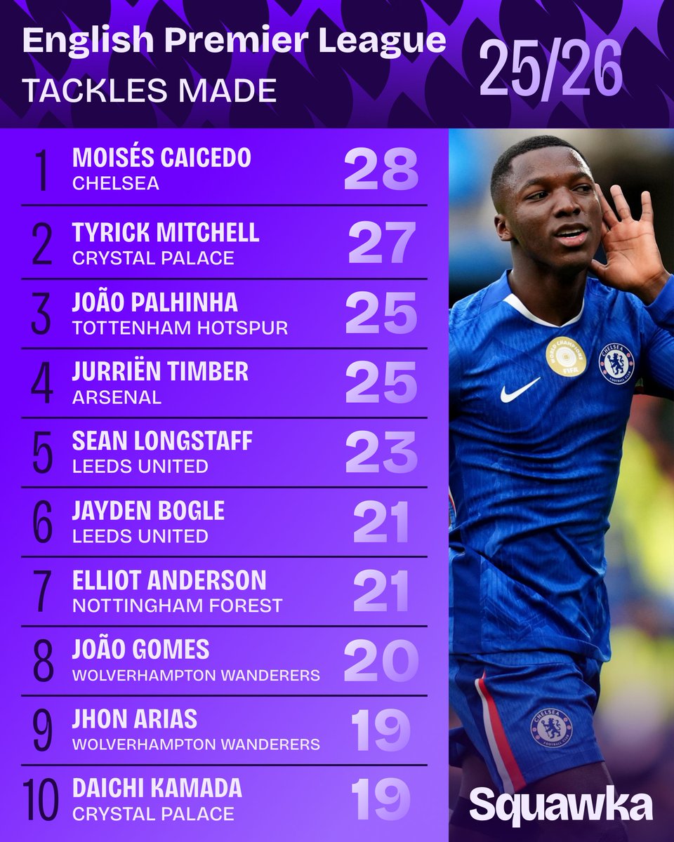 虎撲10月07日訊 國際比賽日來臨,英超進入休賽期。廷貝數(shù)據(jù)網(wǎng)站squawka統(tǒng)計了本賽季英超的爾列搶斷榜。