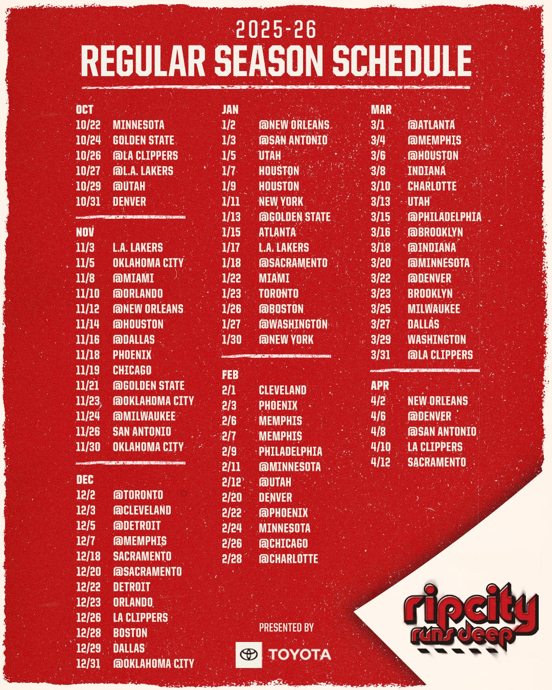 開拓者官推發(fā)布球隊(duì)賽程:10月23日揭幕戰(zhàn)主場(chǎng)對(duì)陣森林狼;屆時(shí)中國(guó)球員楊瀚森有望迎來(lái)NBA生涯常規(guī)賽首秀。規(guī)賽