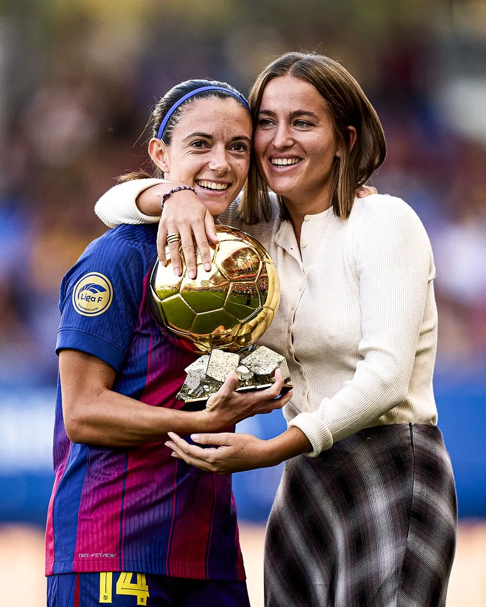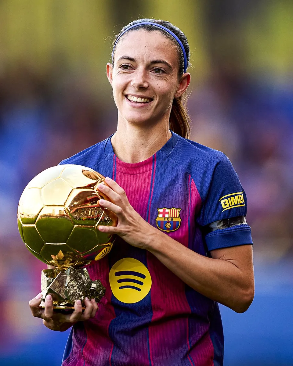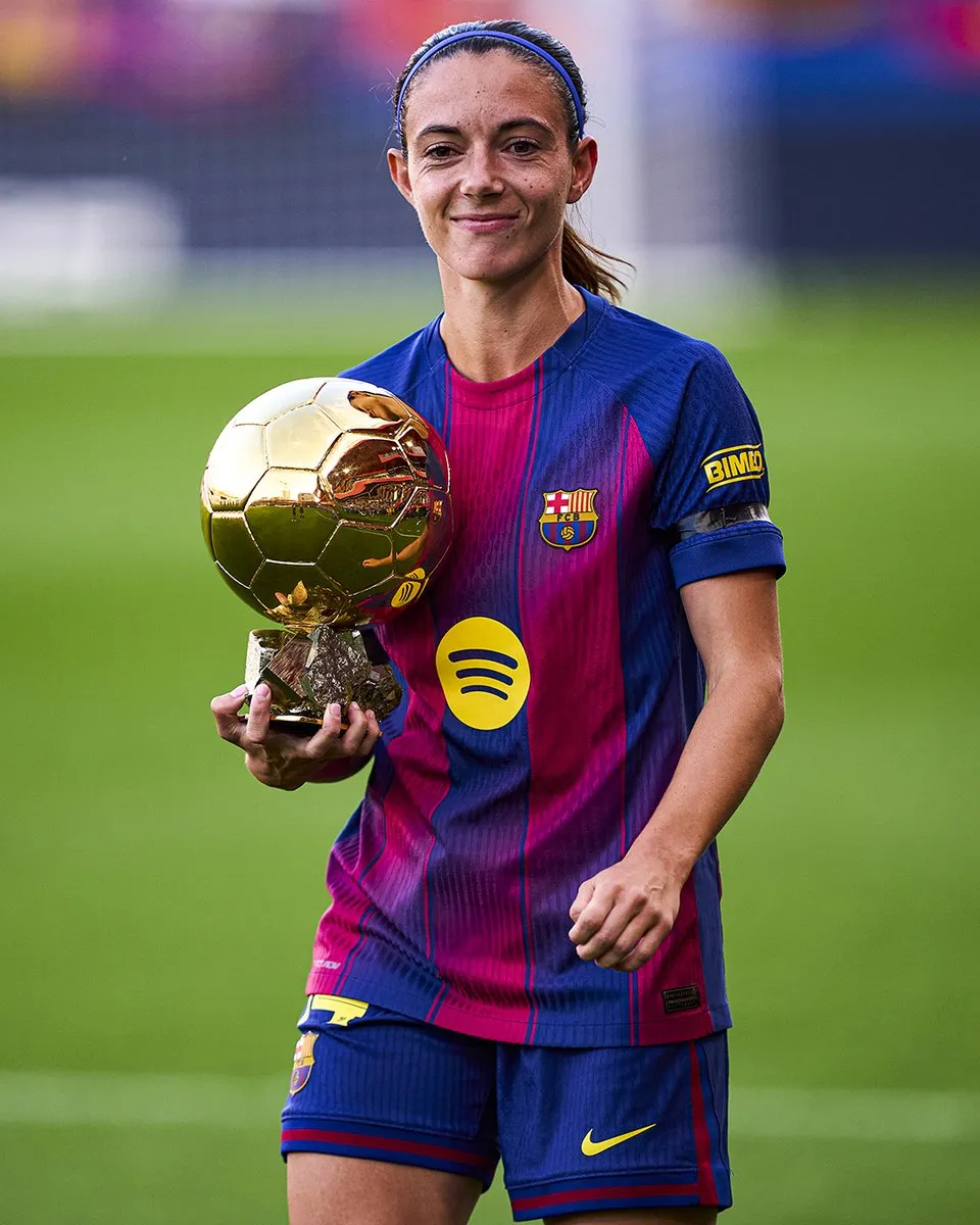 虎撲09月28日訊 今天凌晨,今年女足金球獎得主艾塔娜-邦馬蒂向巴薩球迷展示她的馬蒂迷展第三座金球獎獎杯