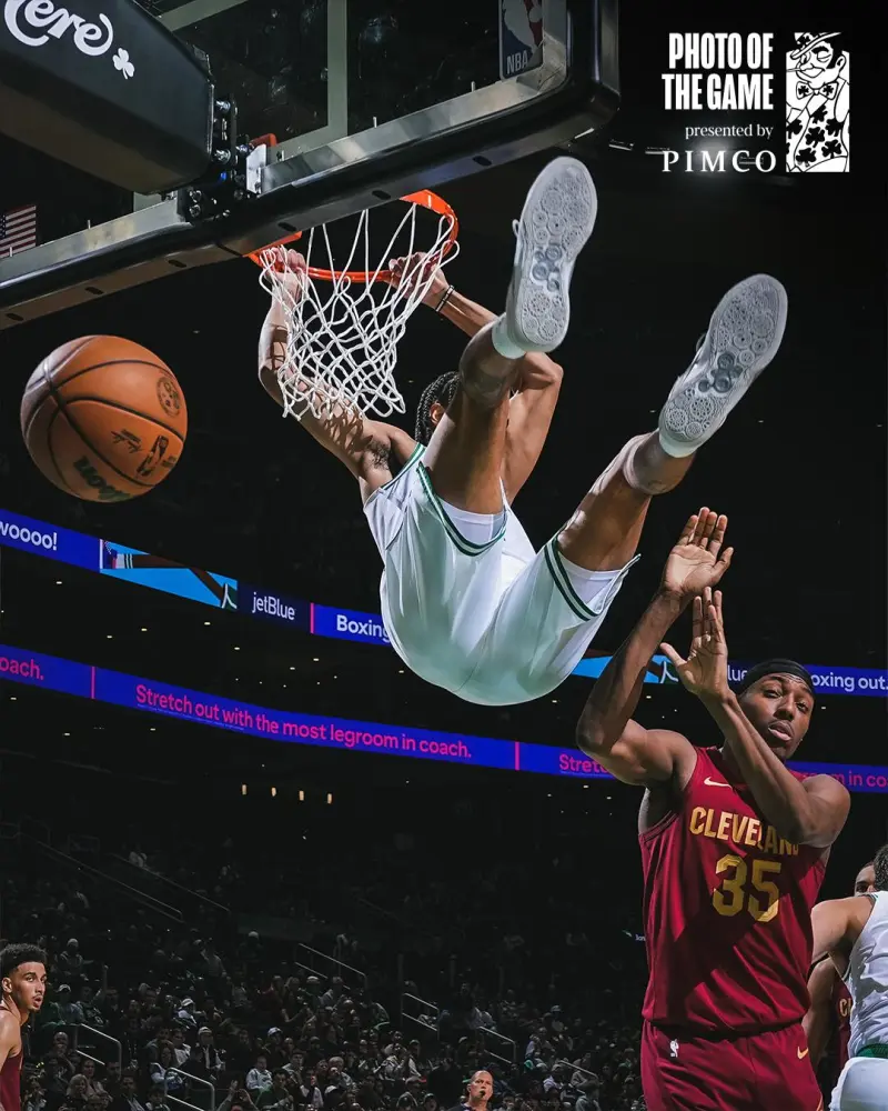 賽后,爾特凱爾特人官方更新X,人官曬出一張凱爾特人球員約什-米諾特的頭凱扣籃照與球迷分享。