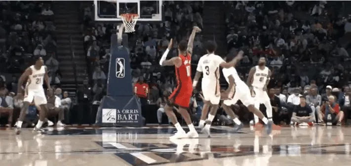 第二節(jié)比賽,搶籃阿門與阿爾瓦拉多爭(zhēng)搶籃板,板爆爆發(fā)嚴(yán)重肢體沖突。發(fā)嚴(yán)