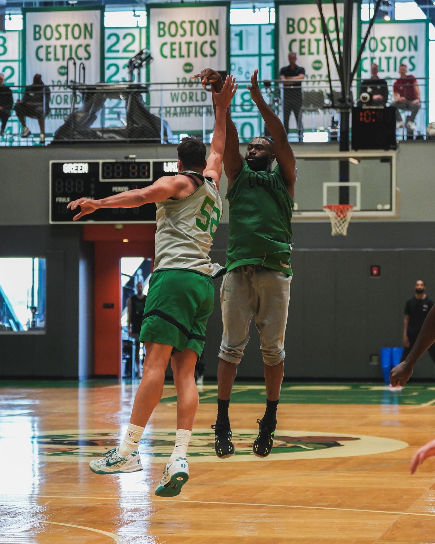 “訓(xùn)練營第一天結(jié)束?!板冠”凱爾特人官方附文道。隊伍