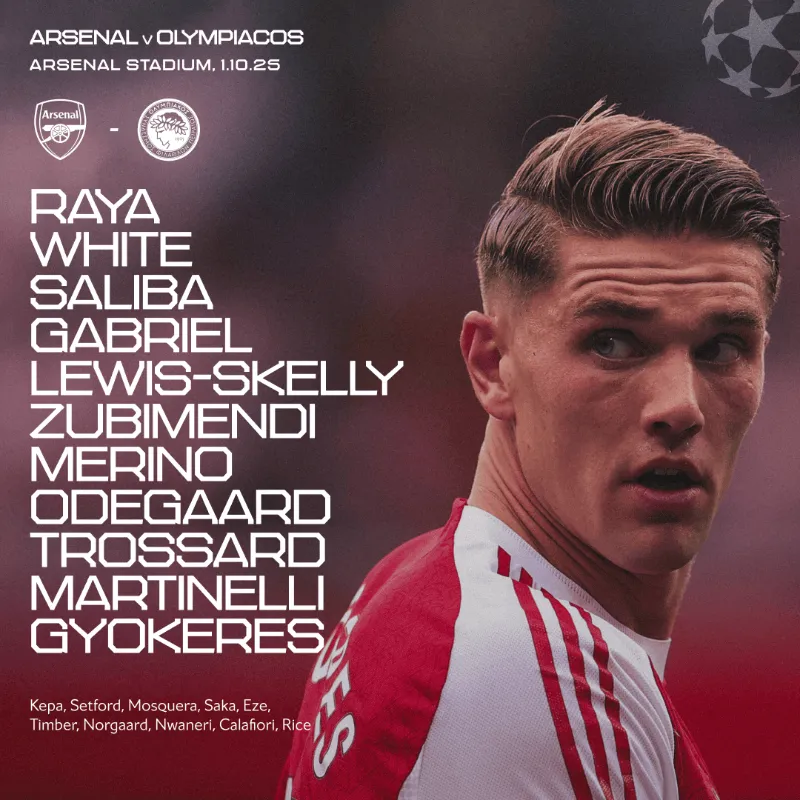 來源:X虎撲10月01日訊 歐冠聯(lián)賽階段第2輪中,阿森納坐鎮(zhèn)主場對陣奧林匹亞科斯。大戰(zhàn)一觸即發(fā),阿森納率先公布了首發(fā)名單。